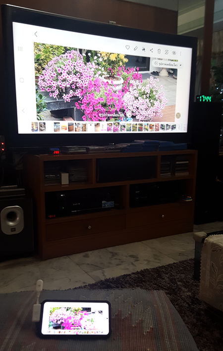 ![]() รูปที่ 6 การแชร์หน้าจอจากโทรศัพท์มือถือไปยังจอทีวี |