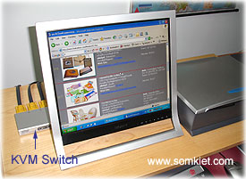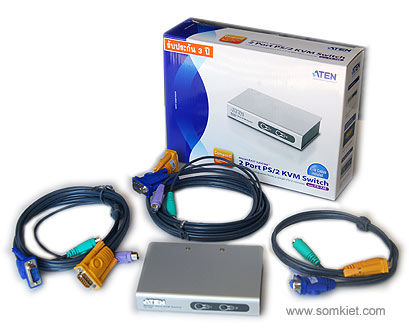 ... | การใช้คอมพิวเตอร์ในปัจจุบันมีมากขึ้น และในเครื่องก็จะมีการติดตั้งโปรแกรมมากขึ้นด้วยซึ่งบางโปรแกรม ใช้เวลาในการคำนวนหรือทำ Process เป็นเวลานาน เช่นพวกวิดีโอ และ Graphics ต่างๆ ดังนั้น จึงมีผู้ใช้จำนวนหนึ่งที่ต้องใช้คอมพิวเตอร์ในการทำงานพร้อมๆกันคราวละ 2 เครื่อง ซึ่งทำให้ต้องเปลืองที่ในการตั้งจอภาพและที่วาง Keyboard และMouse ถึง 2 ชุด อุปกรณ์ KVM Switch ของ ATEN สามารถใช้ต่อกับ PC 2 หรือ 4 เครื่อง ได้ โดยใช้จอ Keyboardและ Mouse เพียงชุดเดียว ซึ่งทำให้ประหยัด KVM Switch รุ่น CS-72E ใช้ต่อ PC ได้ 2 ครื่องส่วนรุ่น CS-74E นั้น ใช้ต่อ PC ได้ถึง 4 เครื่อง ซึ่งการใช้งานก็เพียงกดปุ่มที่ด้านหน้าเครื่อง เพื่อเลือก PC ที่ต้องการให้แสดงผลบนจอ แผนผังการต่อ : ![]()