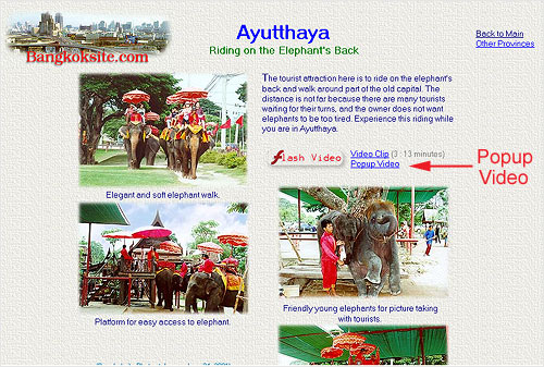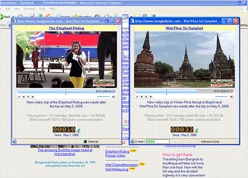 Popup Window มีวิธึทำได้หลายวิธี โดยใช้ JavaScript ซึ่งสามารถหามาได้จากเว็บไซต์ต่างๆ ซึ่งจะเลือกให้แสดง Popup Window โดยอัตโนมัติเมื่อเปิดหน้าเว็บ หรือ ให้แสดง Popup Window เมื่อคลิกที่ข้อความหรือรูปภาพ ก็ได้ จะแสดงตัวอย่างการใช้งาน โดยเข้าไปที่เว็บไซต์ http://javascript.internet.com/generators/popup-window.html จะพบ Popup Window Generator ซึ่งเราจะเลือกกรอกข้อความลงใน ช่องที่กำหนด แล้วสั่งให้ Generate Code ซึ่ง Code จะมีสองส่วน ส่วนแรก ให้ Copy แล้วนำไป Paste ต่อจาก <HEAD> และ Code ส่วนที่ 2 ให้ Copy แล้วนำไป Paste ในหน้า HTML ณ ที่ๆเราต้องการระบุให้คลิกเพื่อเปิดดู Popup Window อย่างไรก็ตาม ก่อนหน้านี้ เราจะต้องสร้างหน้าเว็บเพจขึ้นมาก่อน เพื่อแสดงภาพถ่ายที่ขยายโตขึ้น หรือแสดงวิดีโอคลิป เช่น http://www.bangkoksite.com/VideoClip/AY203P.htm ซึ่งเป็นหน้าที่จะนำเฉพาะพื้นที่ที่กำหนด มาขึ้นแสดงใน Popup Window ตัวอย่าง JavaScript : <!-- TWO STEPS TO INSTALL POPUP WINDOW: 1. Paste the first into the HEAD of your HTML document 2. Use the code to open the popup page on your site --> <!-- STEP ONE: Copy this code into the HEAD of your HTML document --> <HEAD> <SCRIPT LANGUAGE="JavaScript"> <!-- Idea by: Nic Wolfe --> <!-- This script and many more are available free online at --> <!-- The JavaScript Source!! http://javascript.internet.com --> <!-- Begin function popUp(URL) { day = new Date(); id = day.getTime(); eval("page" + id + " = window.open(URL, '" + id + "', 'toolbar=0,scrollbars=0,location=0,statusbar=0,menubar=0,resizable=1, width=430,height=450,left = 297,top = 159');"); } // End --> </script> <!-- STEP TWO: Use the following link to open the new window --> <A HREF="javascript:popUp('http://www.bangkoksite.com/VideoClip/AY203A.htm')">Open the Popup Window</A> <!-- Script Size: 0.73 KB --> ตัวอย่างหน้าเว็บเพจที่มี Link ไปแสดงวิดีโอคลิป ในแบบ Popup Window คลิกที่รูปภาพข้างล่างนี้ ซึ่งจะ Link ไปยังหน้าอื่น และหลังจากนั้น คลิกที่ Popup Video เพื่อดูวิดีโอคลิปในแบบ Popup ![]() ถ้าท่านมีอินเทอร์เน็ตความเร็วสูง (High Speed Internet) ก็อาจจะเปิดดูวิดีโอคลิป ให้ Popup ขึ้นมาคราวละ 2 Windows ก็ได้ ตามรูปข้างล่างนี้ ![]() |
