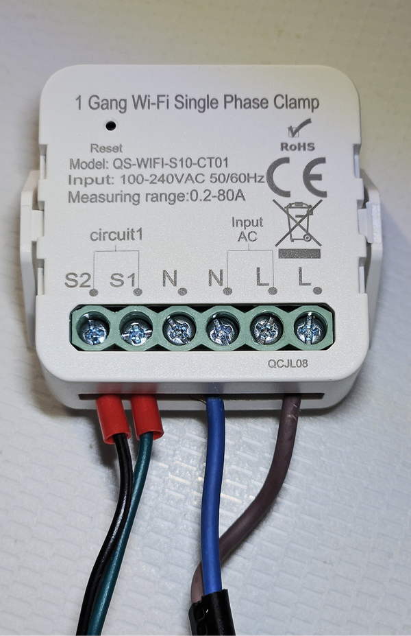 ![]() รูปที่ 2 Sonoff POWR2 แสดงขั้วสำหรับต่อสายไฟ |